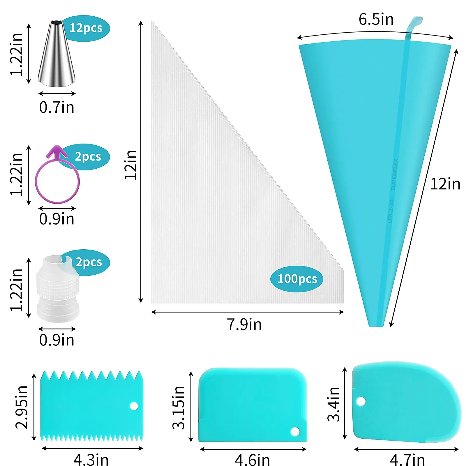 This 120-piece piping bags and tips set is perfect for both beginner and professional bakers, providing a complete solution for cake and cupcake decorating. The kit includes multiple pastry bags, frosting tips, and icing scrapers for versatile decorating options. Made from durable, food-safe materials, each piece ensures safe and reliable use. Ideal for creating intricate designs, patterns, and frosting details with ease. Lightweight and easy to handle, the set simplifies the decorating process and reduces cleanup. A comprehensive and essential baking accessory, this kit combines convenience, quality, and creativity for all your dessert projects.