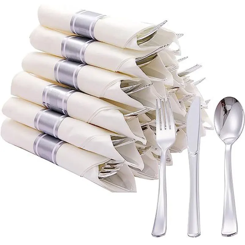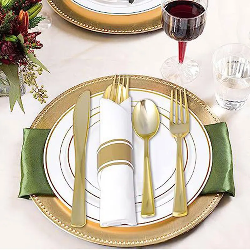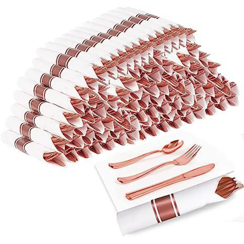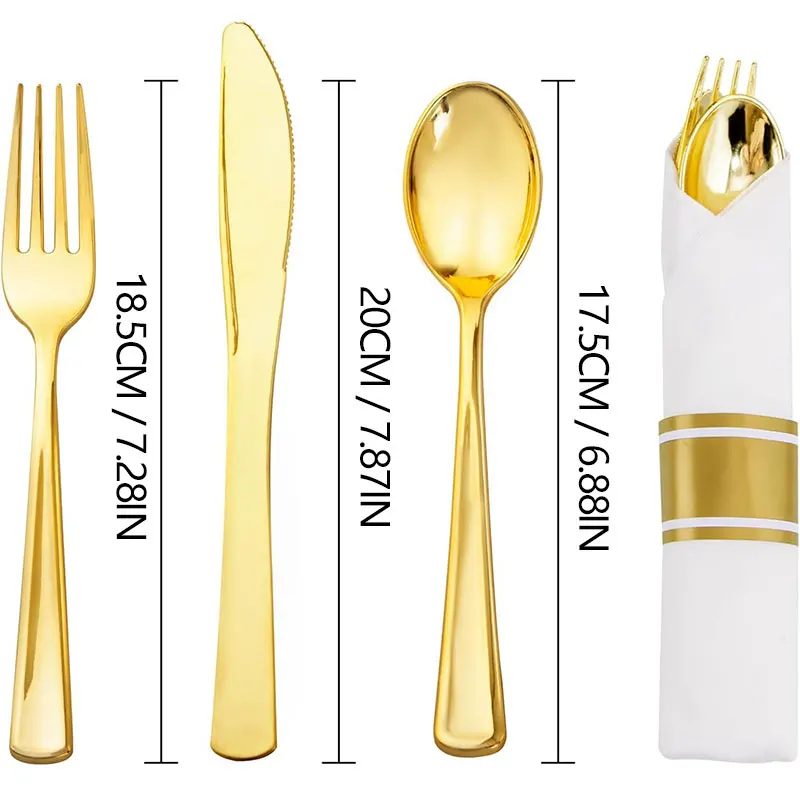 Bring elegance and convenience to any event with this 15pcs Western Tableware Set. Each set includes a transparent plastic knife, fork, and spoon in stunning gold, silver, or rose-gold tones, paired with a matching tissue paper napkin for a complete, stylish table setting. Designed for single use but made with durable, high-quality materials, this disposable cutlery set is perfect for parties, weddings, birthdays, and holiday gatherings. Lightweight, hygienic, and easy to clean up afterward, it offers a modern look while saving you time and effort—ideal for both casual meals and special occasions.