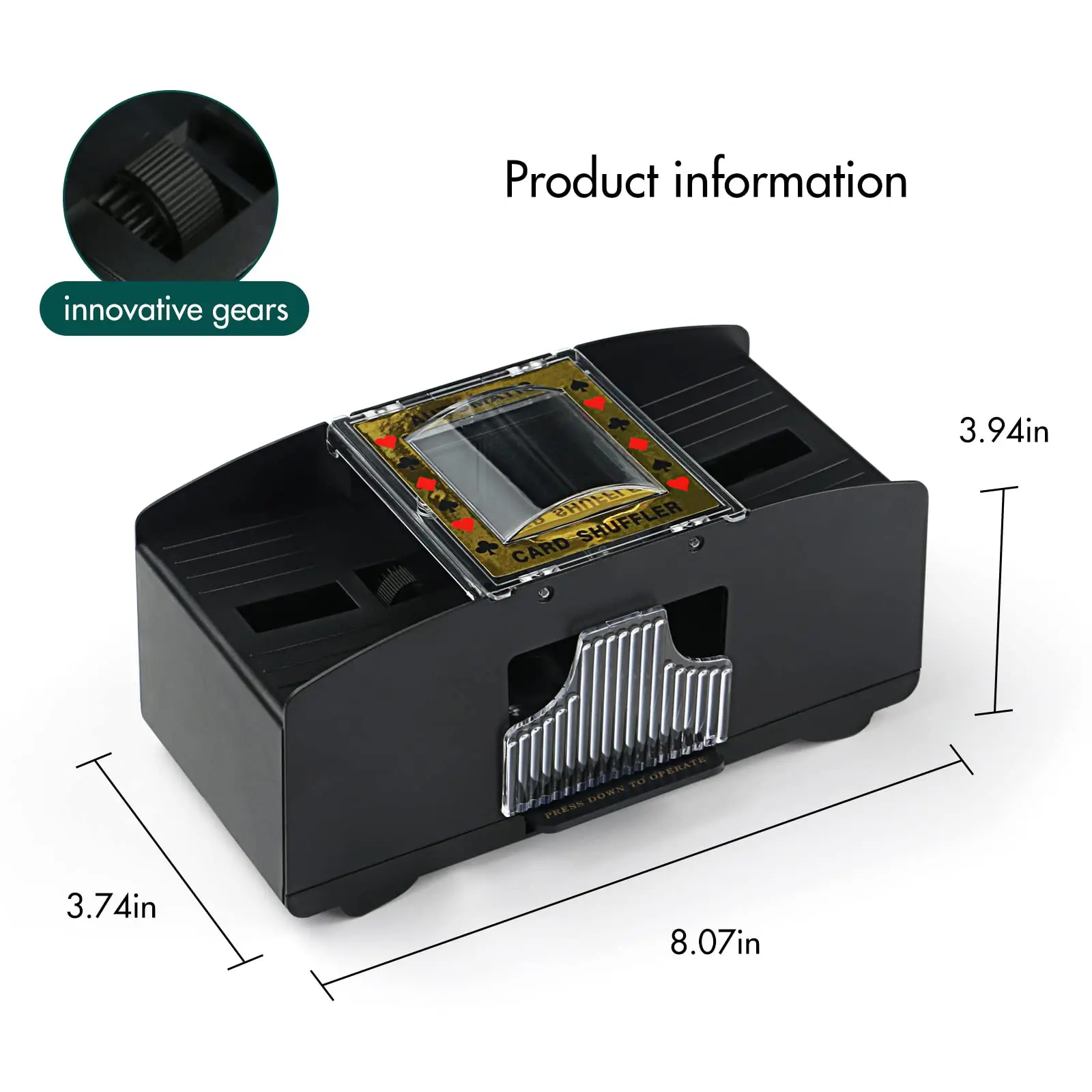 This 2-in-1 automatic card shuffler and dealing machine makes every game night faster, easier, and more fun. Designed to handle two decks at once, it ensures perfectly mixed cards for fair gameplay. The battery-operated system delivers smooth and efficient shuffling with the press of a button. Ideal for Texas Hold’em and other multiplayer card games, it boosts convenience and reduces manual effort. Its compact, lightweight build makes it great for home use, travel, or party setups. A must-have accessory for players who want a professional and hassle-free gaming experience.