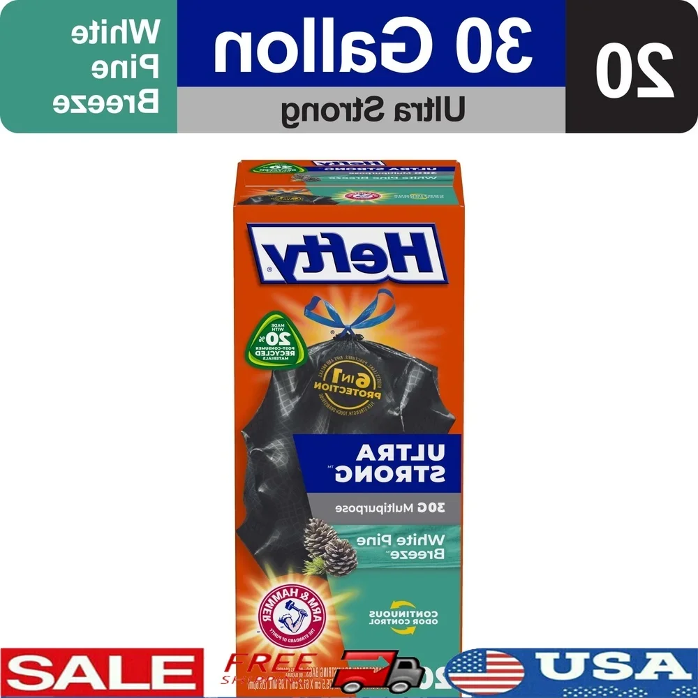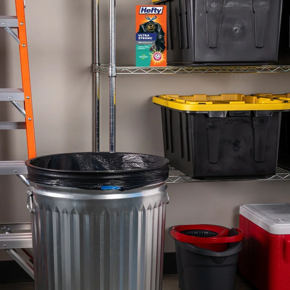 These 30-gallon ultra strong trash bags offer heavy-duty performance with scented odor control to keep your space smelling fresh. The Pine Breeze fragrance helps neutralize unpleasant smells, making them ideal for kitchens, garages, and outdoor cleanup. Built with puncture-resistant and leak-proof strength, each bag handles large, heavy, or irregular waste with confidence. The reinforced drawstring closure ensures easy lifting, tying, and carrying without spills. This 20-count pack provides dependable durability for home, office, or event use. Combining strength, scent, and convenience, these bags are a reliable solution for all your large-capacity trash needs.