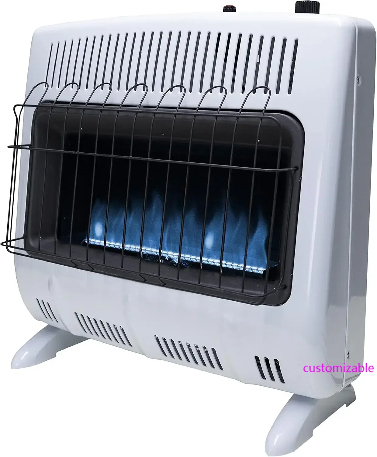 This 30,000 BTU Blue Flame Natural Gas Heater provides powerful whole-room warmth for cold seasons. Its vent-free design allows efficient heating without the need for complex installation. The blue flame technology warms the air quickly and evenly throughout the space. A built-in thermostat maintains a steady, comfortable temperature at all times. It features multiple heat settings, giving you full control over your comfort level. The heater is designed for quiet operation, making it ideal for living rooms, basements, and work areas. Its sleek white finish blends effortlessly with most home interiors. Safety is prioritized with an automatic shut-off system that activates if oxygen levels become low. The heater also includes sturdy mounting hardware for secure wall installation. It offers reliable performance even during power outages since it runs on natural gas. The durable construction is built to last through many winter seasons. This powerful heating unit is perfect for creating a warm and cozy environment in medium to large indoor spaces.