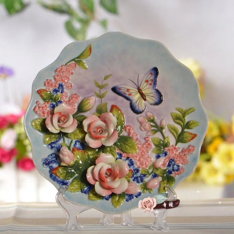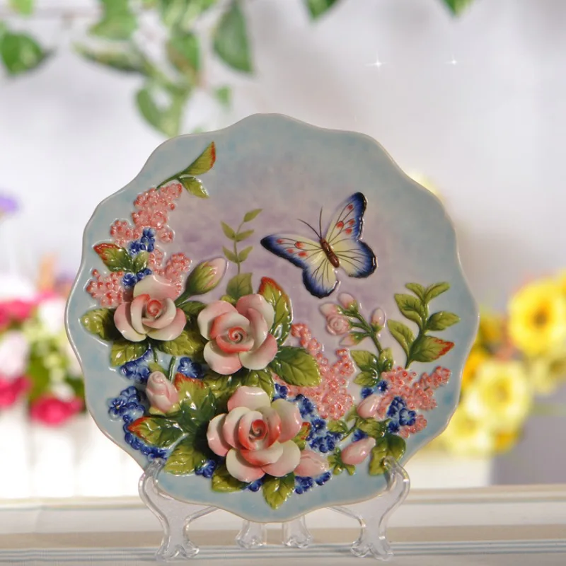 3D Champagne Rose Porcelain Decorative Wall Plate