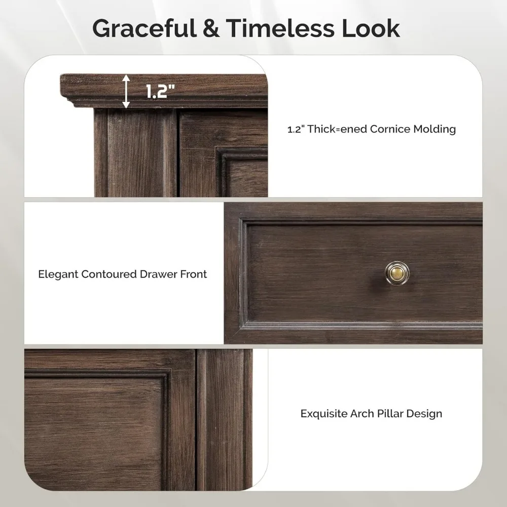 This 47-inch tall wooden dresser offers generous vertical storage while maintaining a compact footprint perfect for any bedroom. Its five smooth-gliding drawers provide ample space for clothing, accessories, and daily essentials. Crafted from durable wood with a rich brown finish, it adds warmth and timeless style to your room décor. The sturdy construction ensures long-lasting use whether placed in a master bedroom, guest room, or kid’s room. Sleek drawer handles enhance ease of use while completing the dresser’s clean, modern aesthetic. This versatile chest of drawers is an ideal solution for keeping your space neat, organized, and beautifully furnished.