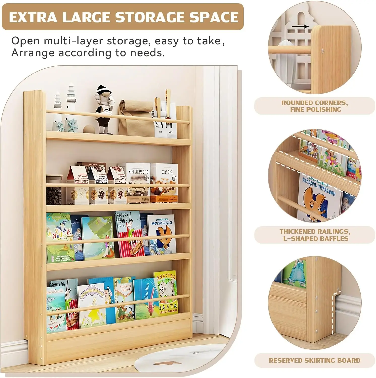 This 6-tier behind-door bookshelf is designed to maximize small spaces while keeping kids’ books neatly organized. Its slim, wall-mounted design fits perfectly on the back of doors or tight wall areas, making it ideal for bedrooms, playrooms, and nurseries. Each tier provides ample room for picture books, early readers, and slim toys. The open, visible layout encourages children to choose and return books independently. Built with sturdy, child-safe materials, it stays secure and stable when properly mounted. A smart, space-saving solution, this narrow organizer helps create a clutter-free reading corner anywhere in your home.
