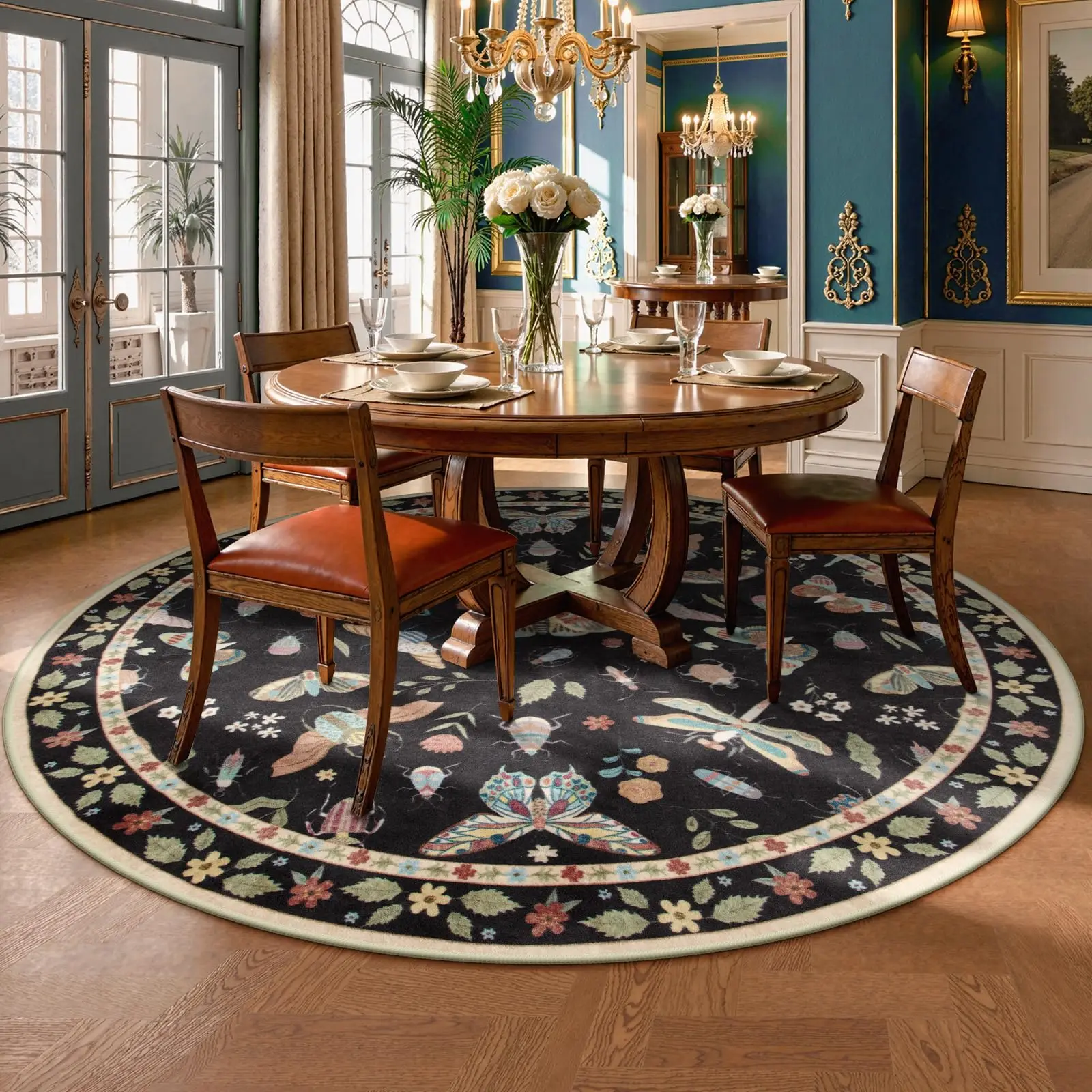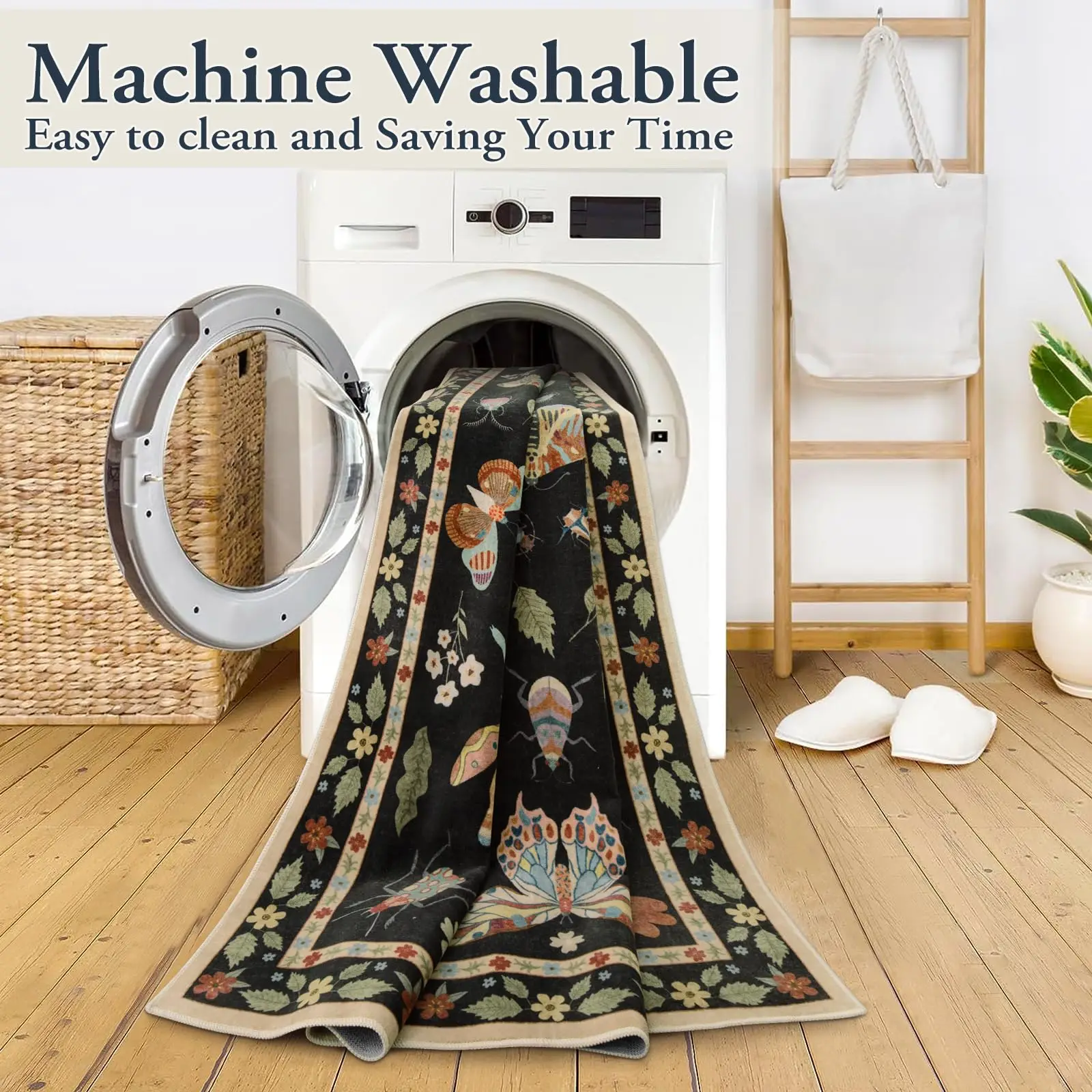 This butterfly-themed round area rug adds a touch of boho charm to any room. Its soft surface provides a cozy and comfortable feel under your feet. The vibrant butterfly design creates a beautiful focal point in bedrooms, living rooms, or play areas. Made with durable fibers, it is designed for everyday use. The non-slip backing helps keep the rug firmly in place on any floor type. It is fully washable, making it easy to care for and maintain a fresh look. The low-pile texture ensures it fits well under furniture without catching. Its round shape is perfect for creating a warm, inviting space. Lightweight yet sturdy, it’s simple to move and reposition as needed. This stylish rug combines beauty, comfort, and practicality for any home.