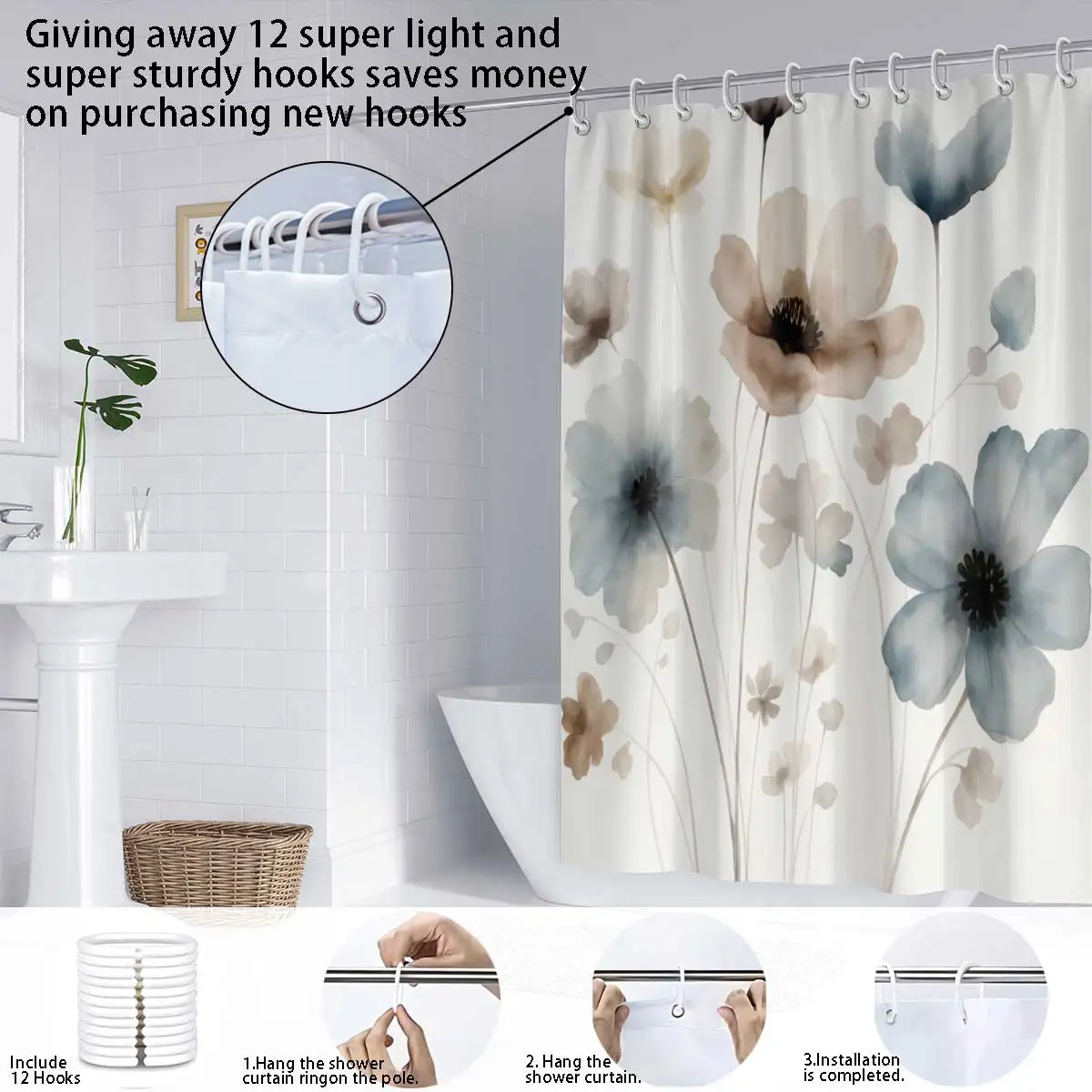 This elegant floral print shower curtain adds a soft, watercolor-inspired charm to any bathroom. Made from lightweight polyester, it drapes beautifully while offering full privacy and splash protection. The vibrant flower design brings a refreshing and timeless look suitable for all seasons. It includes durable hooks, making installation quick and effortless. The fabric is easy to clean and resists moisture, keeping your bathroom fresh and stylish. Its smooth, premium texture enhances the overall aesthetic of your bath space. The curtain fits most standard showers and tubs with ease. Perfect for updating your bathroom with a touch of artistic elegance.