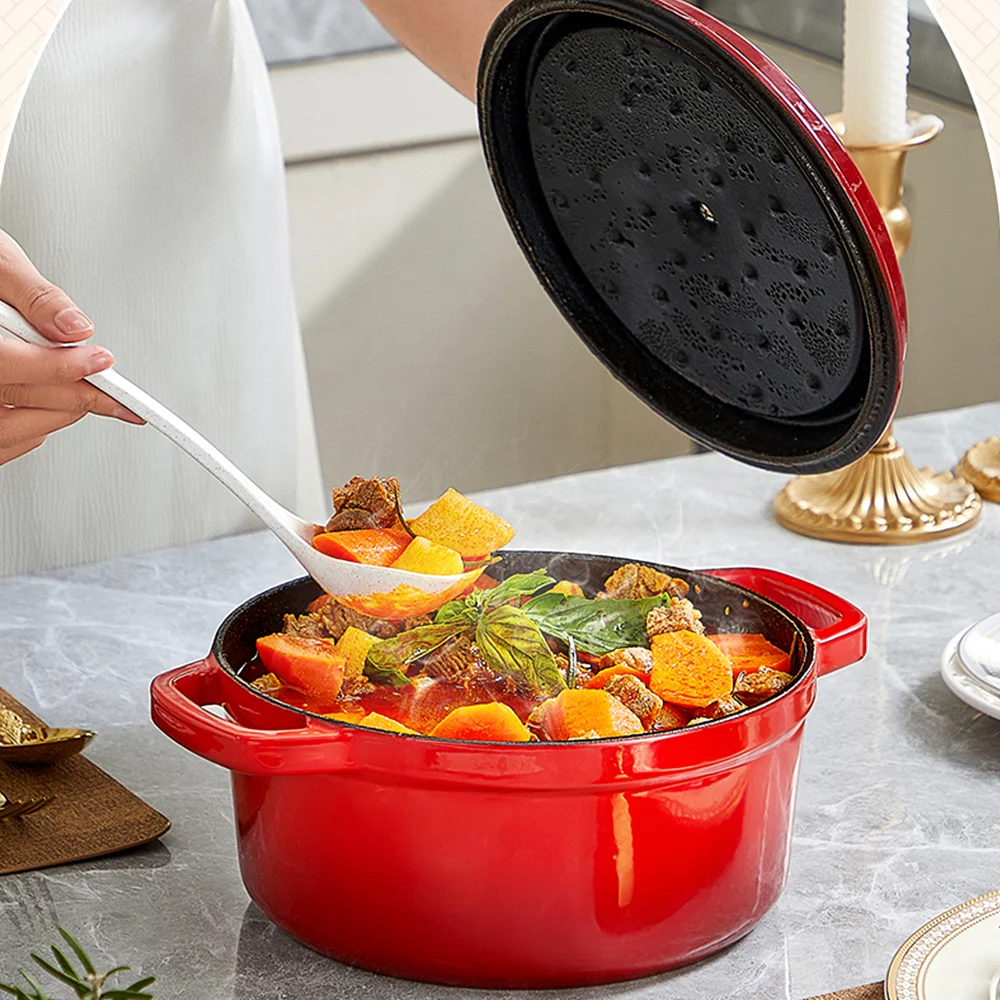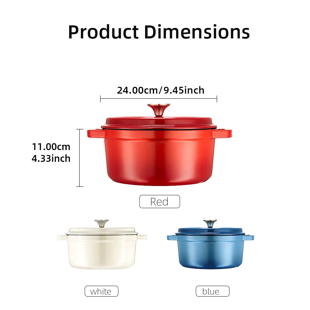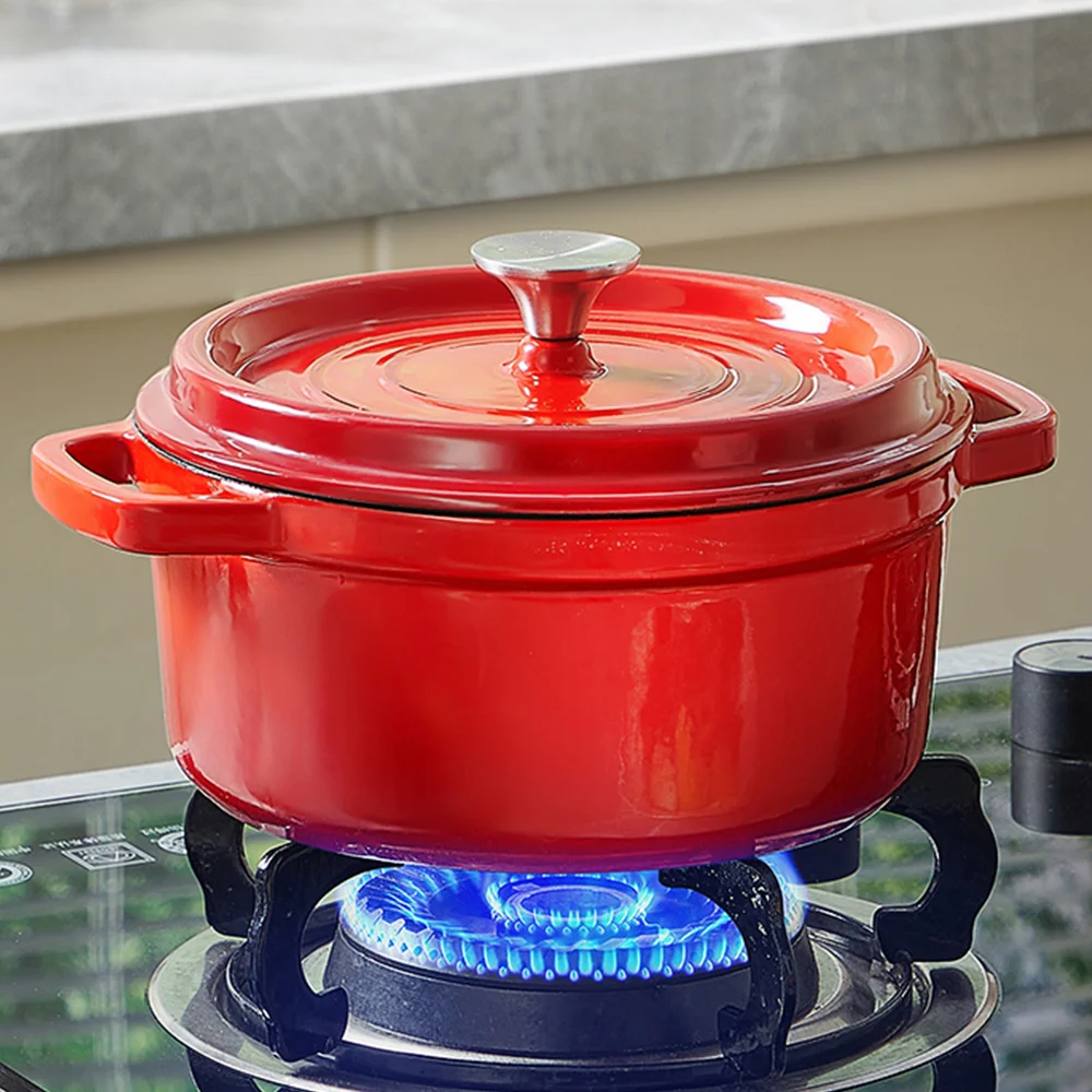 This enamel cast iron Dutch oven is designed to deliver superior heat retention and even cooking results. Its durable cast iron construction ensures long-lasting performance for everyday meals and special occasions. The smooth enamel coating prevents sticking and makes cleanup effortless. With a generous 7-quart capacity, it’s perfect for simmering soups, slow-cooking stews, baking bread, or roasting tender meats. The tight-fitting lid locks in moisture and flavor for delicious, consistent results. Built to be versatile, it works on gas, electric, ceramic, and induction cooktops. The oven-safe design allows seamless transitions from stovetop to oven. Its vibrant blue color adds a stylish touch to any kitchen décor. Sturdy side handles offer a safe and comfortable grip when lifting or carrying. This pot heats evenly, reducing hotspots and ensuring perfectly cooked dishes every time. Whether you're meal prepping or hosting family dinners, it provides ample space for large recipes. Designed for home chefs of all skill levels, this Dutch oven is a dependable kitchen essential.
