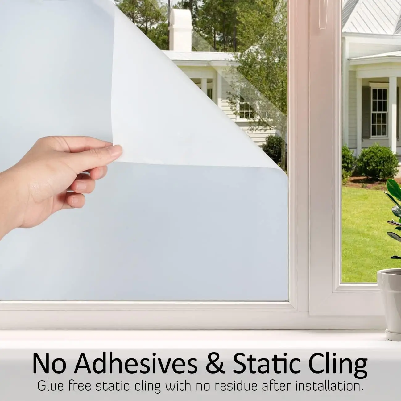 This frosted window privacy film provides an elegant matte white finish that enhances privacy without blocking natural light. Its non-adhesive static cling design allows for easy installation and removal with no sticky residue. The film offers excellent daytime privacy, making it perfect for bathrooms, bedrooms, offices, and entryways. It also helps reduce heat and glare, creating a more comfortable indoor environment. Made from high-quality, durable material, it resists peeling, bubbling, and discoloration. The soft frosted texture adds a modern, minimalist look to any glass surface. You can trim and customize it to fit any window size or shape. This film is reusable, making it ideal for renters and homeowners alike. It provides UV protection to help keep furniture and flooring from fading. With its clean, stylish design, this privacy film is a simple yet effective upgrade for any room in your home.