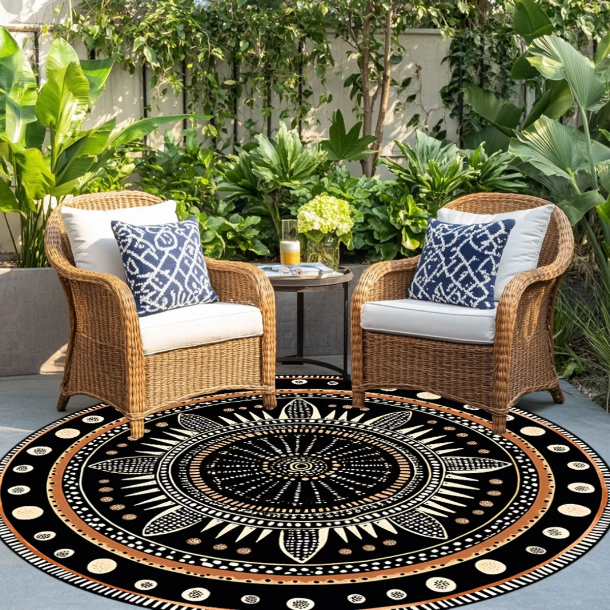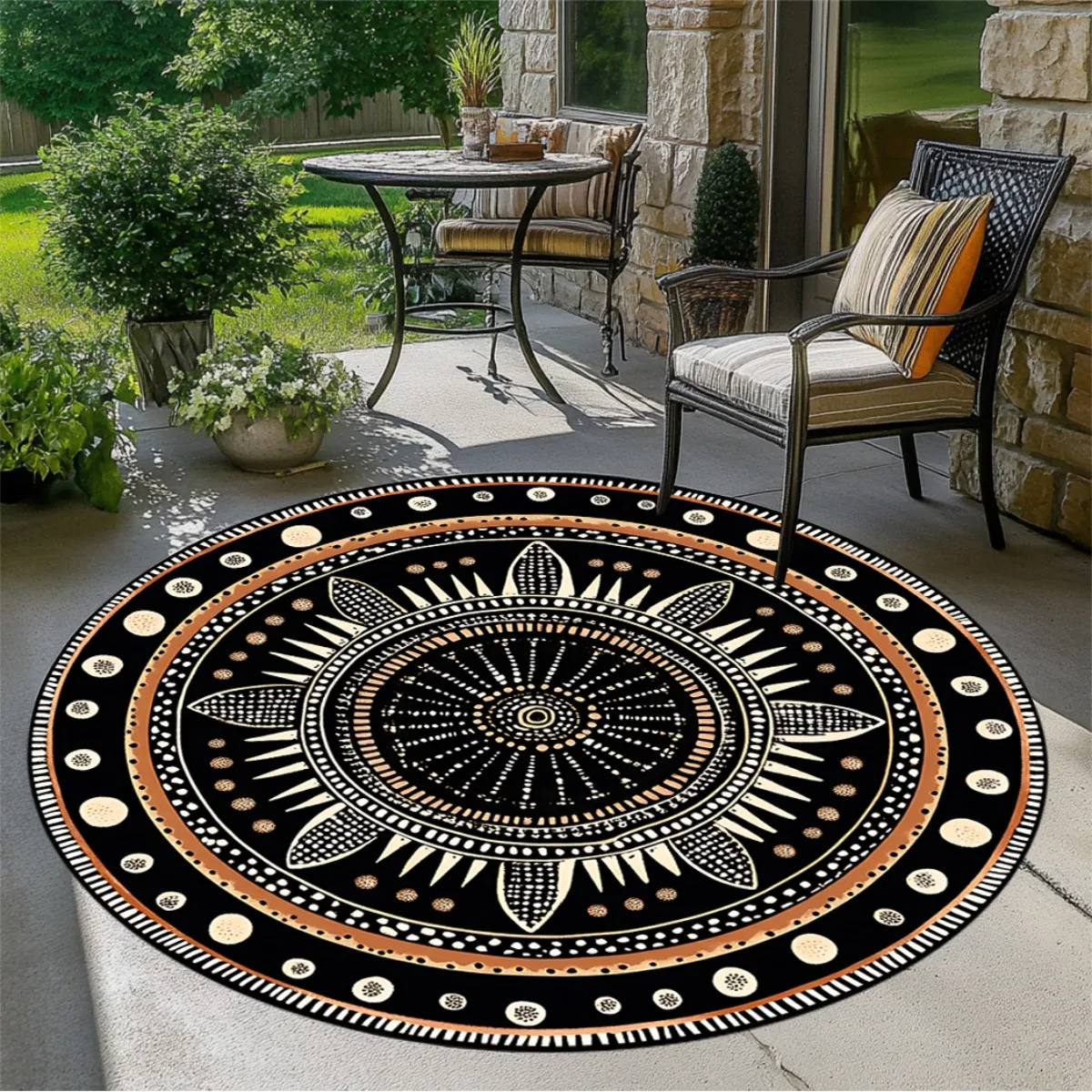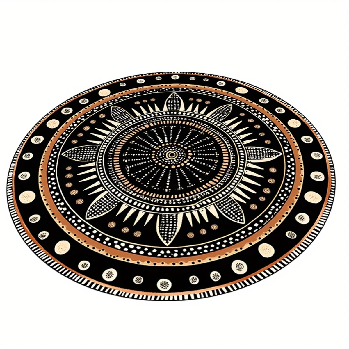 This African geometric round rug adds a bold, cultural touch to any bedroom or living room. Its mystical ethnic-inspired pattern creates a striking focal point in your space. Made from durable polyester, it withstands daily use with ease. The fade-resistant design keeps the colors vibrant and fresh over time. Its soft texture provides comfort underfoot while enhancing room ambiance. The rug is fully washable, making maintenance simple and convenient. A non-slip backing helps keep it securely in place on most floor surfaces. Its round shape works beautifully in seating areas, reading corners, or entryways. This rug complements modern, boho, tribal, and eclectic décor styles. With artistic flair and dependable durability, it brings warmth and character to any home.