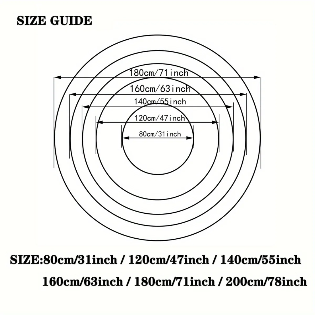 | size | 40CM, 60CM, 80CM.90CM.100CM., 120CM, 150CM |