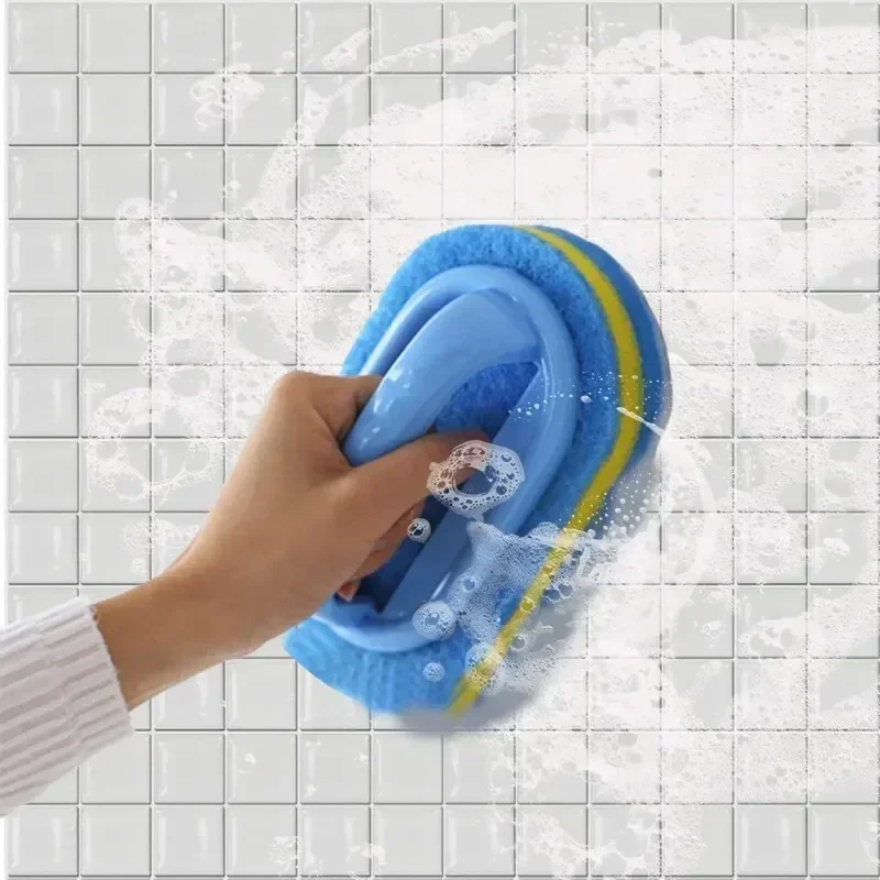 This cleaning brush features a sturdy handle paired with a thick, absorbent sponge for effective scrubbing on multiple surfaces. Designed to tackle kitchen grease, bathroom stains, and tile grime, it provides powerful cleaning with minimal effort. The ergonomic handle offers a comfortable grip, making long cleaning sessions easier on your hands. Its dense sponge material wipes away dirt, soap scum, and residue without scratching surfaces. Perfect for sinks, countertops, tiles, and bathtubs, this tool is a versatile addition to any household. Durable, lightweight, and easy to rinse clean, it ensures reliable performance for everyday cleaning tasks.