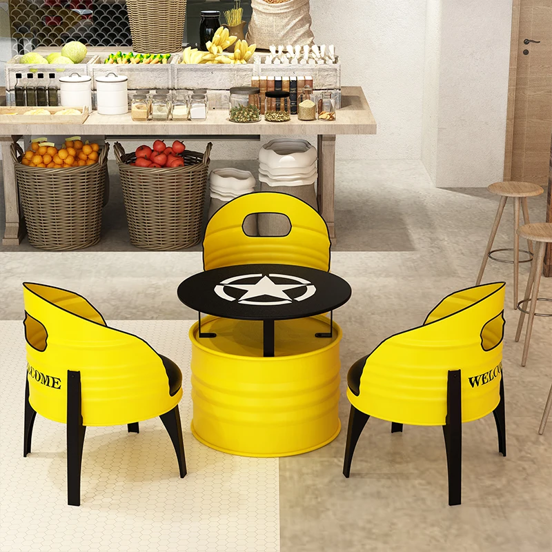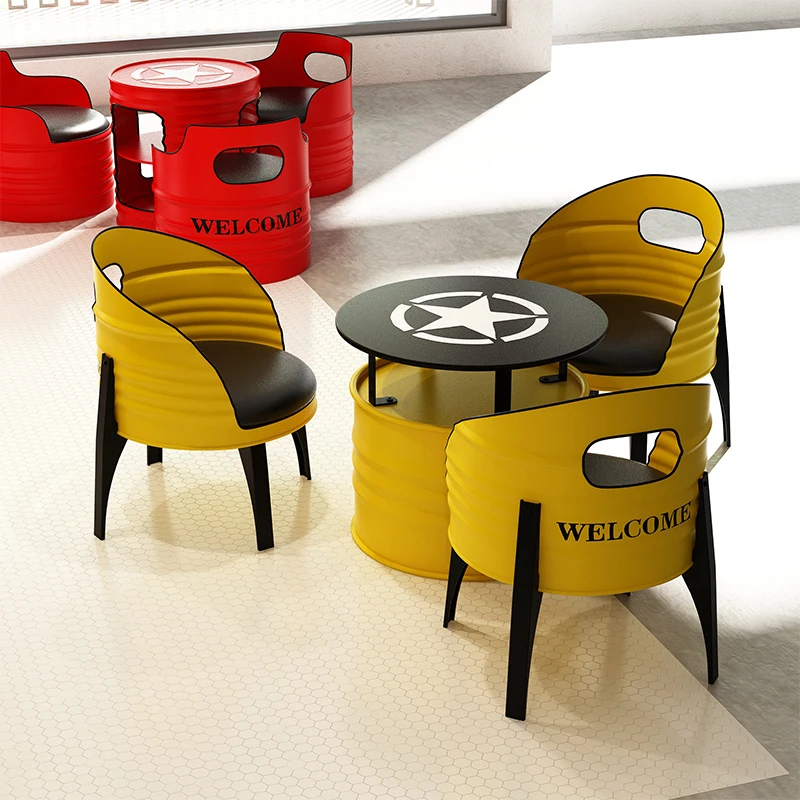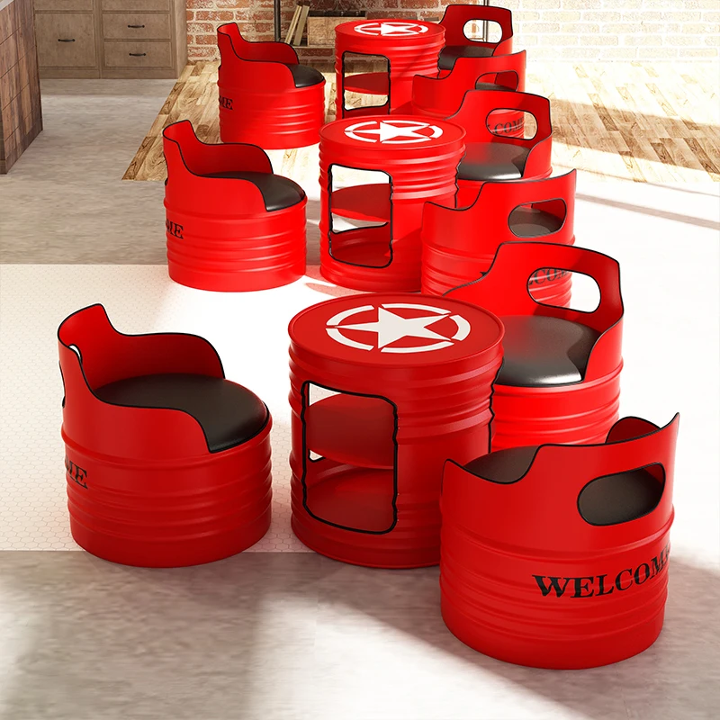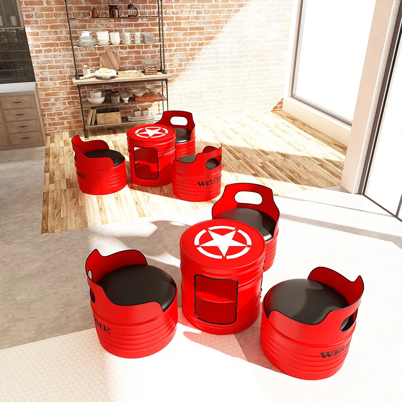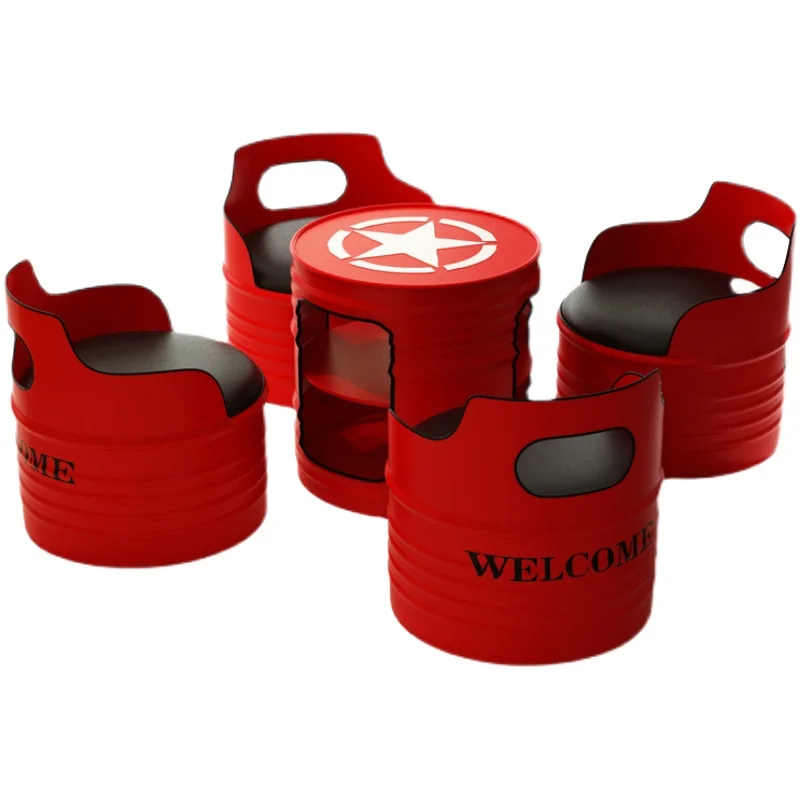 This industrial-style bar table and chair set transforms any space with its bold retro oil-drum design. Built with durable wrought iron, each piece delivers a rugged aesthetic perfect for bars, cafés, KTV lounges, and creative retail spaces. The comfortable cushioned seating blends industrial charm with modern usability. Its compact card-table layout makes it ideal for small rooms while still offering a standout visual statement. The high-quality materials ensure long-lasting performance, even in high-traffic environments. Perfect for anyone looking to add personality and industrial flair to their décor.