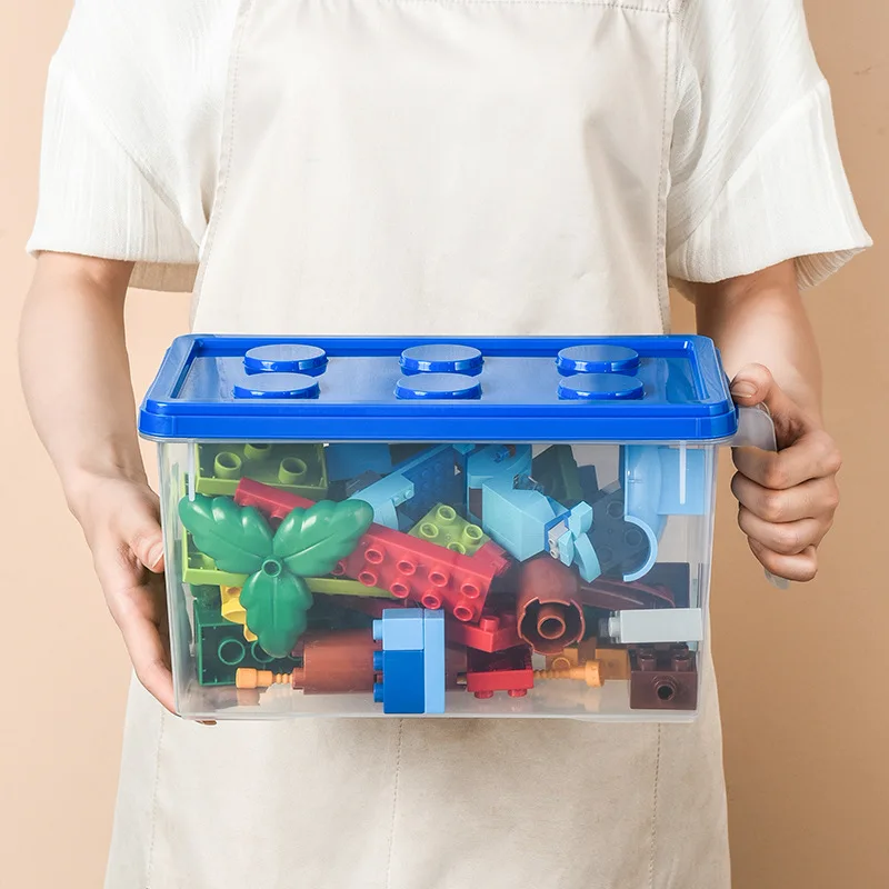 This kids building block storage box provides a convenient and dust-proof way to organize building blocks, bricks, and small toys. The sturdy handle makes it easy for children to carry their favorite pieces anywhere. Its secure, snap-on lid keeps contents protected and prevents spills during transport or storage. The durable plastic design is lightweight yet strong enough for everyday use. Stackable construction allows multiple boxes to be stored neatly without taking up extra space. Practical, portable, and child-friendly, this container keeps play areas tidy and building pieces perfectly organized.