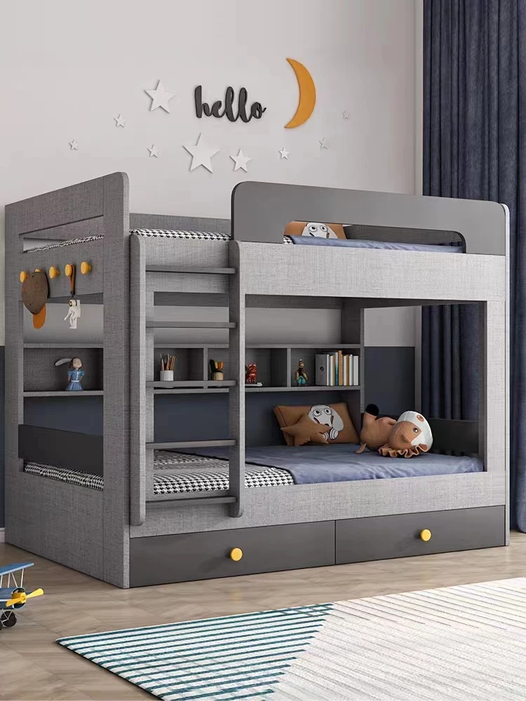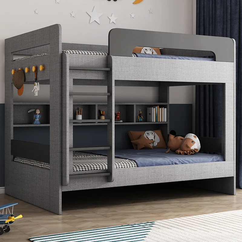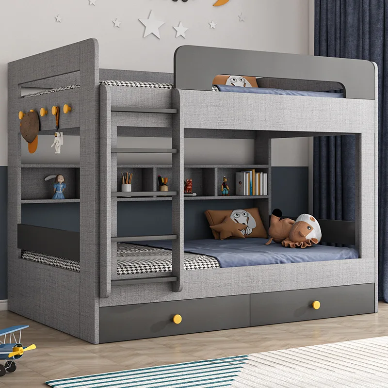 This modern kids loft bunk bed brings both style and functionality to any child’s bedroom. Its sturdy MDF construction ensures long-lasting durability. The built-in storage drawers help keep toys, clothes, and essentials organized. The staircase design provides safe and easy access to the upper bunk. Each step also includes hidden storage for added convenience. The design works well for both boys and girls. Its compact layout is ideal for maximizing space in smaller rooms. The loft style allows for creative use of the floor area. The clean and modern look complements a variety of décor themes. This bed encourages a tidy and well-arranged sleeping space. It makes a practical upgrade for growing kids. The combination of comfort, storage, and style makes it a great bedroom centerpiece.