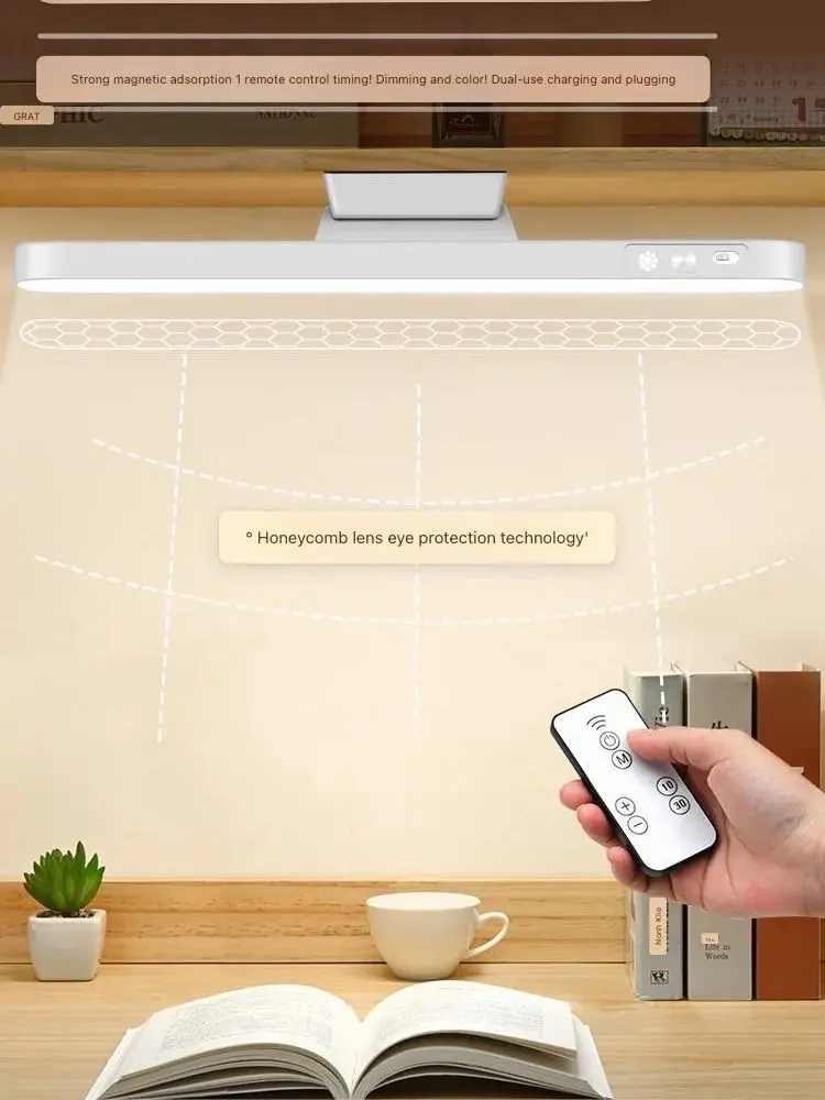 This magnetic LED desk lamp offers versatile lighting for any room in your home. It features a sleek hanging design that attaches easily to metal surfaces. The lamp includes three adjustable color modes for reading, relaxing, or nighttime use. Its built-in rechargeable battery ensures convenient cordless operation. You can control the brightness and modes effortlessly with the included remote. The soft LED glow provides eye-friendly illumination for late-night tasks. It works perfectly in cabinets, closets, and wardrobes where extra lighting is needed. The magnetic base allows quick removal for use as a handheld light. Its slim, modern design blends well with any décor style. USB charging makes it compatible with power banks, laptops, and wall adapters. The lamp is lightweight, portable, and easy to reposition at any time. Bring functional, stylish, and flexible lighting to your space with this magnetic LED desk lamp.