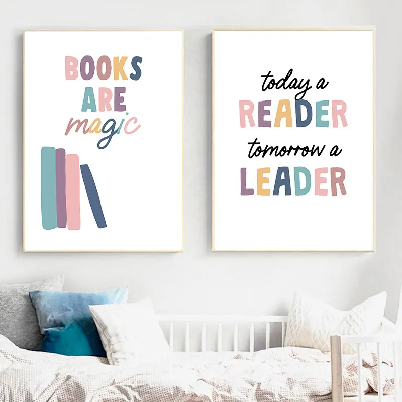 This motivational canvas poster features the inspiring quote “Readers Today, Leaders Tomorrow” paired with a vibrant colorful books design. Its bold and cheerful artwork makes it perfect for brightening up kids’ rooms, reading corners, home classrooms, and play spaces. The high-quality print offers crisp details and rich colors that stand out beautifully on any wall. Lightweight and easy to hang, it adds instant positivity and educational charm to your décor. Ideal for encouraging a love of reading, it creates a warm and uplifting learning environment. This canvas poster is both stylish and meaningful, making it a wonderful addition to any home or classroom.
