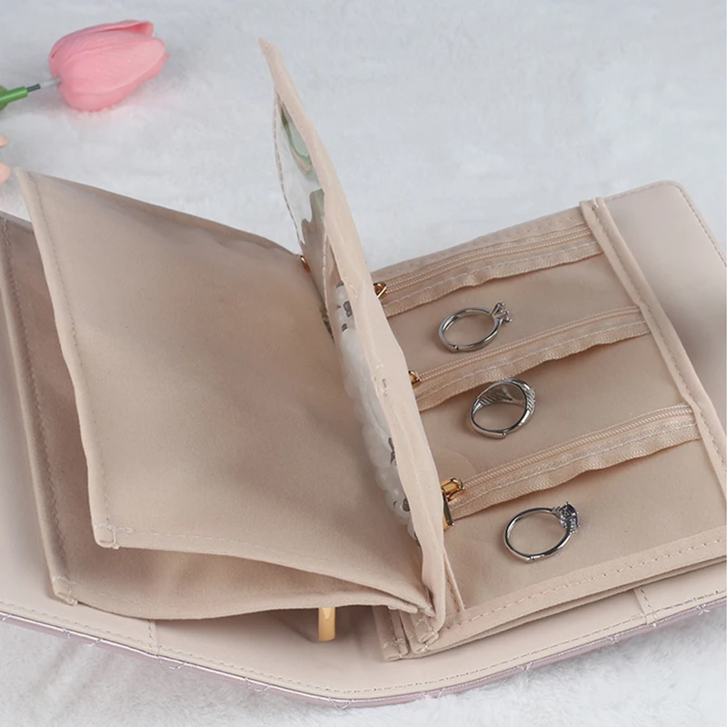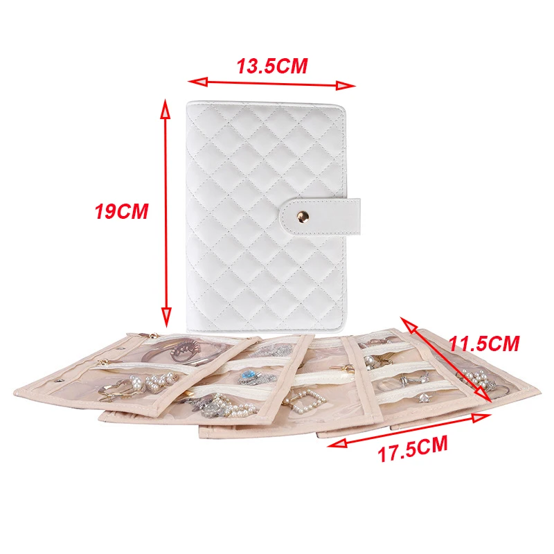 This Multi-Functional Jewelry Storage Bag keeps your accessories neatly organized wherever you go. Designed like a slim notebook, it opens to reveal multiple compartments that protect earrings, necklaces, rings, and bracelets. The detachable pages and pouches let you customize the layout to suit your travel needs. Its compact, lightweight design fits easily into handbags, suitcases, or backpacks. Crafted from durable, high-quality materials, it keeps your jewelry safe from scratches and tangles. Perfect for vacations, business trips, or everyday organization, this case combines portability with elegant, practical design.