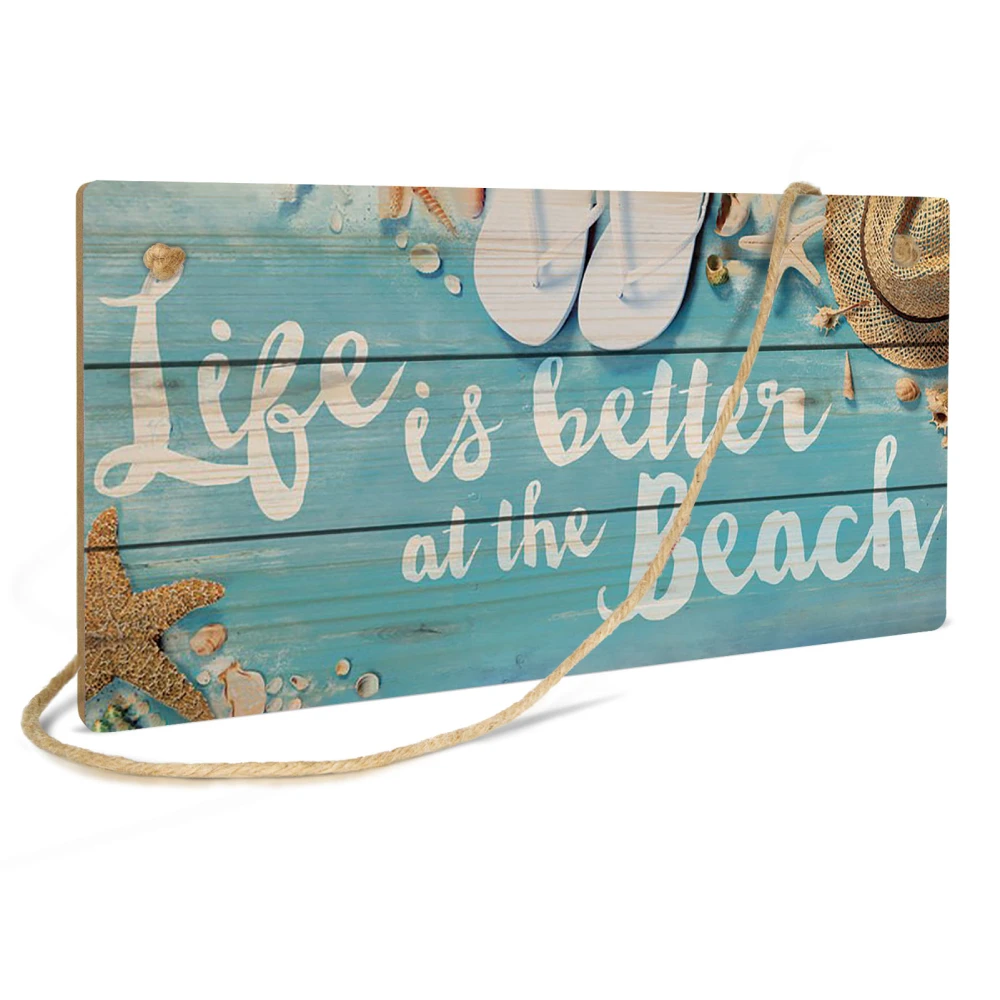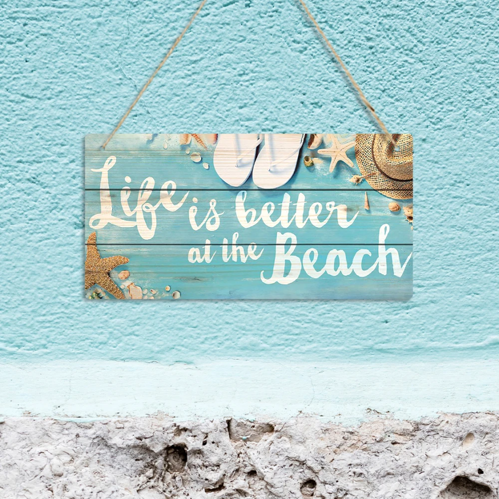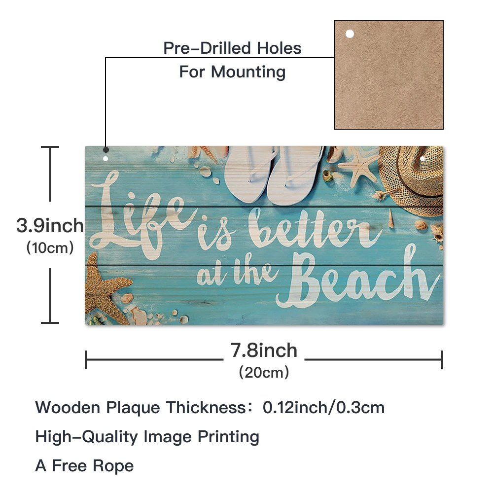 Bring a touch of coastal charm to any space with this Putuo Decor Beach Wooden Hanging Sign. Crafted from quality wood, it features a rustic finish that complements beach-themed interiors. Its compact 3.9″ x 7.8″ size makes it perfect for bedrooms, living rooms, entryways, or beach houses. The pre-attached rope allows for quick and easy hanging. Lightweight yet durable, it adds a warm seaside vibe without overwhelming your décor. This decorative plaque is a simple way to infuse your home with relaxing beach energy.