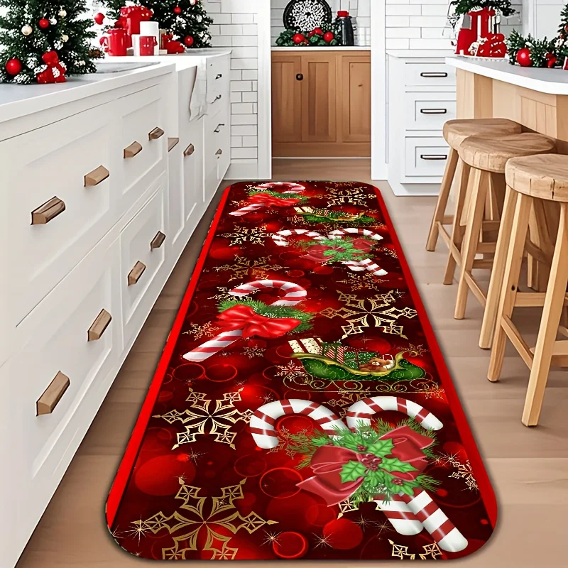 Bring festive charm to your home with this VIKAMA red and gold Christmas runner mat. The elegant color combination adds a warm and joyful holiday touch to any space. Its long, narrow design makes it perfect for entryways, hallways, kitchens, and laundry rooms. The mat features a soft, comfortable surface that feels great underfoot. A non-slip backing keeps it securely in place, ensuring safe daily use. The durable material resists wear, fading, and frequent foot traffic. Easy to clean, it’s ideal for busy holiday households. This runner mat enhances your seasonal décor while providing practical floor protection. Lightweight and flexible, it can be placed or moved with ease. Add festive style and functionality to your home this Christmas with this beautiful holiday floor mat.