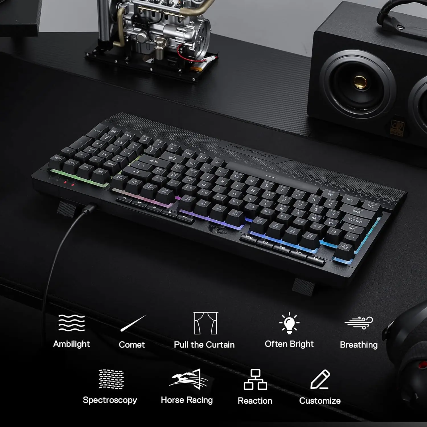 The Redragon K515 Shiva RGB Gaming Keyboard delivers a smooth, ultra-responsive typing experience perfect for both gamers and everyday users. Its 98-key compact layout saves desk space while maintaining full functionality. Equipped with linear mechanical-like switches, it provides quiet, fast, and consistent keystrokes. The keyboard features vibrant RGB backlighting with multiple lighting modes to match any gaming setup. A detachable wrist rest offers ergonomic comfort during long gaming or working sessions. The keys are designed with a low-profile structure for quicker actuation and effortless typing. Anti-ghosting technology ensures every keystroke is registered accurately, even during intense gameplay. Its durable construction guarantees long-lasting performance and reliability. The keyboard connects easily to any PC setup with a stable wired connection. Customizable keys allow users to fine-tune macros and lighting to their personal preferences. Its sleek design makes it suitable for minimal, modern, or RGB-heavy desk aesthetics. Overall, the Redragon K515 Shiva is a reliable, stylish, and high-performance keyboard for gamers and professionals alike.