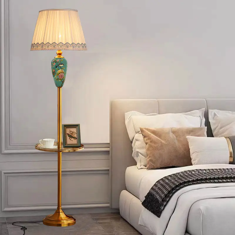This retro floral ceramic floor lamp brings a charming Nordic aesthetic to any room. Its beautifully crafted ceramic base and floral detailing create an elegant, artistic focal point. The integrated tray design adds convenient storage space for small items, making it perfect for living rooms and bedside areas. Equipped with an energy-efficient LED light, it provides warm, gentle illumination ideal for reading or relaxing. The tall, slim structure fits effortlessly beside sofas, chairs, or nightstands. With its blend of creativity, functionality, and timeless style, this floor lamp enhances your home with both beauty and practical lighting.