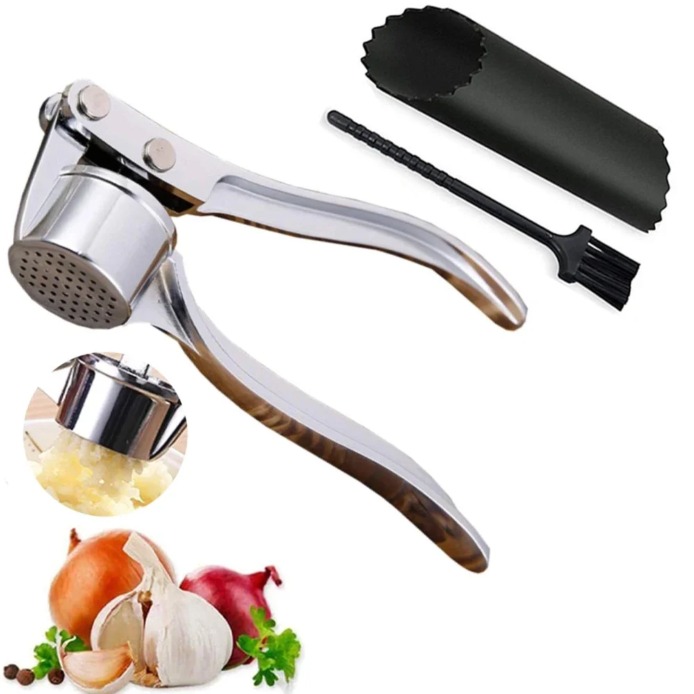 This stainless steel garlic press makes crushing garlic quick and effortless. It produces fine, even garlic pieces for cooking. The sturdy construction ensures long-lasting use in any kitchen. A included garlic peeler helps remove skins with ease. The cleaning brush makes maintenance simple and convenient. The ergonomic handle provides a comfortable grip during pressing. It is also suitable for ginger and other small ingredients. The compact size allows for easy storage in drawers. It speeds up meal preparation and reduces manual effort. The press is easy to rinse clean after each use. Its durable design performs well for daily cooking tasks. This versatile tool is a must-have for every home kitchen.