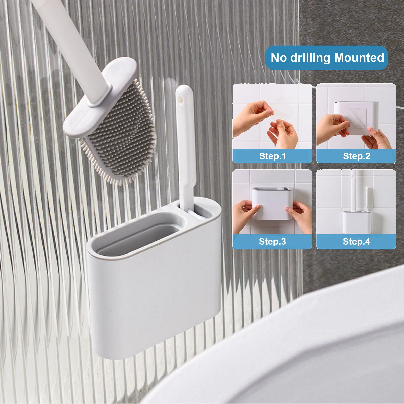 This wall-mounted silicone toilet brush offers a modern, hygienic way to keep your bathroom spotless. Its flexible soft bristles clean thoroughly without scratching the toilet bowl surface. The quick-drying design prevents water buildup and reduces odor. A waterproof, drip-free holder keeps your bathroom tidy and organized. The long handle ensures comfortable, effortless scrubbing from every angle. Easy wall mounting allows for space-saving storage without the need for drilling. The sleek, minimalist design blends seamlessly with any bathroom décor. Durable, sanitary, and convenient, this toilet brush is a must-have upgrade for everyday bathroom cleaning.