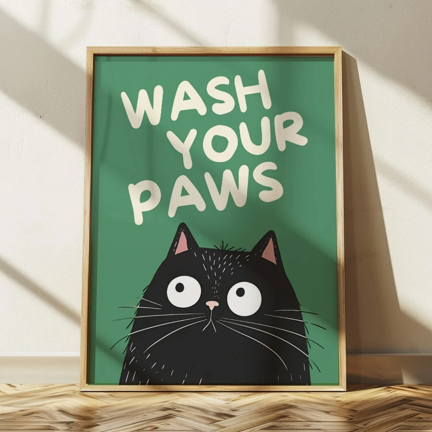 This “Wash Your Paws” black cat canvas print brings fun and charm to any space. The humorous design features a cute cat with a playful bathroom message that always gets a smile. Its bold, modern style fits perfectly in bathrooms, powder rooms, kitchens, or quirky living spaces. Made with crisp, high-quality printing, it delivers sharp details and vibrant contrast. The lightweight canvas material makes it easy to hang and reposition as needed. This artwork adds character to minimalist, modern, farmhouse, or eclectic home décor. It’s a great conversation starter for guests and visitors. Durable and fade-resistant, it stays looking fresh over time. Perfect for cat lovers, pet owners, or anyone who enjoys humorous wall art. Give your home a cozy, playful touch with this unique cat-themed canvas poster.