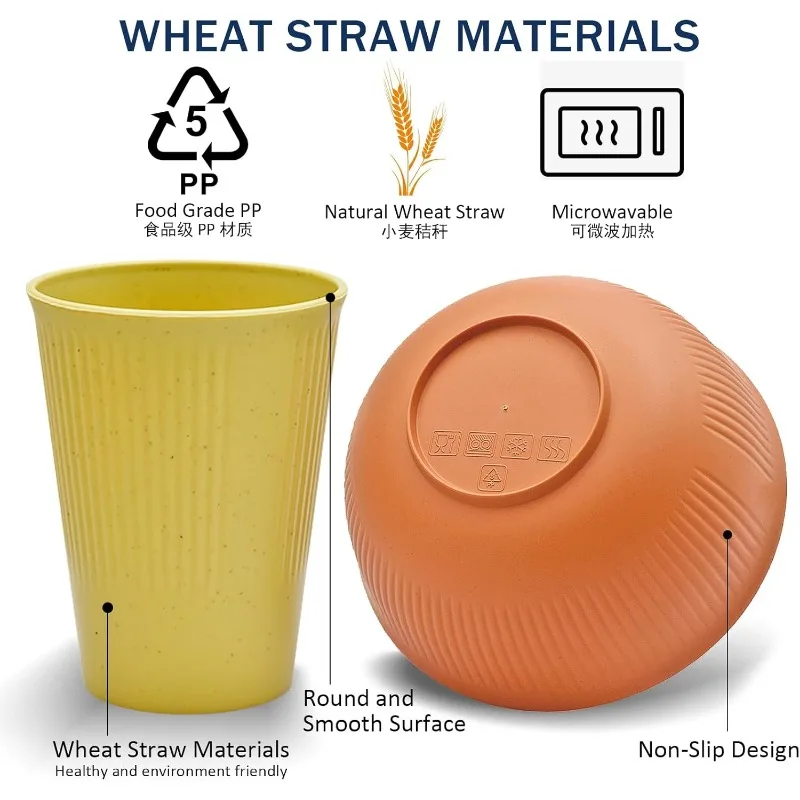 This wheat straw dinnerware set offers a lightweight and eco-friendly option for daily meals. The reusable design makes it a sustainable alternative to disposable tableware. Each set includes plates, cups, knives, forks, and spoons. The material is durable yet gentle to handle. These pieces are safe for microwave heating. They are also dishwasher safe for quick and easy cleanup. The smooth surface provides a comfortable dining experience. The set is perfect for both kids and adults. Its lightweight build makes it great for camping, picnics, and travel. The sturdy construction resists cracking during regular use. The neutral style fits well with any kitchen décor. This versatile set brings convenience and sustainability to every meal.